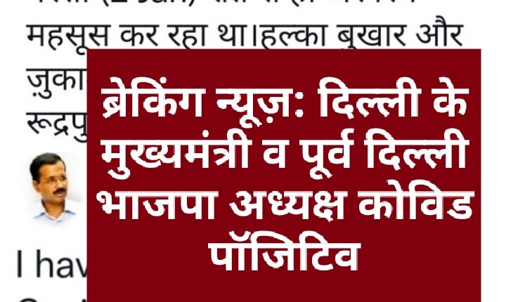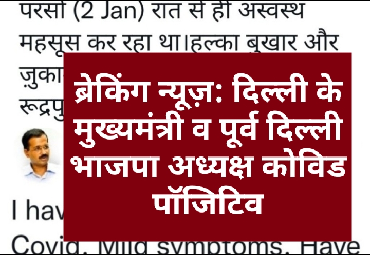 दिल्ली के मुख्यमंत्री अरविंद केजरीवाल व दिल्ली भाजपा सांसद व पूर्व प्रदेश अध्यक्ष मनोज तिवारी कोरोना पॉजिटिव पाए गए है।