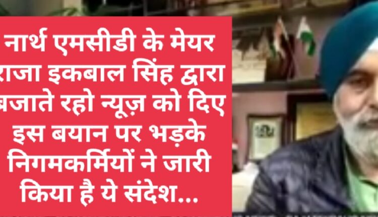 नार्थ एमसीडी के मेयर राजा इकबाल सिंह द्वारा बजाते रहो न्यूज़ को दिए इस बयान पर भड़के निगमकर्मियों ने जारी किया है ये संदेश…