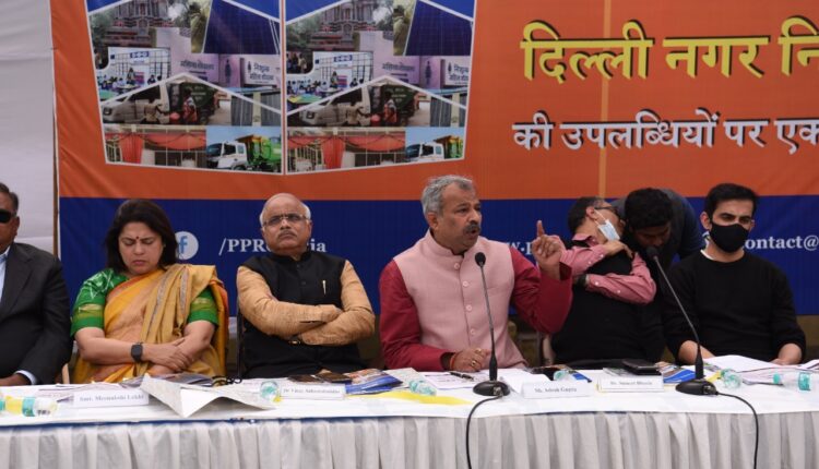 आज लोक नीति शोध केंद्र (पीपीआरसी) ने दिल्ली के नगर निगमों की उपलब्धि पर ’कर्मनिष्ठा दिल्ली नगर निगम’ शीर्षक से एक रिपोर्ट जारी की। इस अवसर पर आदेश कुमार गुप्ता (अध्यक्ष-दिल्ली भाजपा), डॉ. विनय सहस्रबुद्धे (सांसद-राज्यसभा, अध्यक्ष-आईसीसीआर), मीनाक्षी लेखी (राज्य मंत्री – विदेश मंत्रालय),दुष्यंत कुमार गौतम (राष्ट्रीय महामंत्री-भाजपा, सांसद-राज्यसभा), रामवीर सिंह बिधूड़ी (नेता प्रतिपक्ष-दिल्ली विधानसभा) और सांसद गौतम गंभीर, हंसराज हंस, प्रवेश साहिब सिंह वर्मा, रमेश बिधूड़ी और पीपीआरसी के निदेशक डॉ. सुमीत भसीन मौजूद थे।