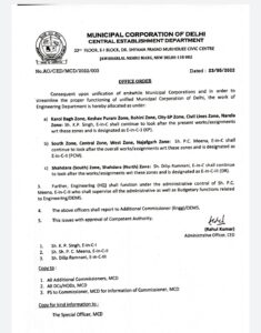 उधर इंजीनियर इन चीफ की बात करें तो तीन अधिकारियों को इंजीनियर इन चीफ बनाया गया है जिसमें पहले नंबर पर के पी सिंह है जिन्हें 6 जोन की जिम्मेदारी दी गई है। जिसमें करोल बाग, केशव पुरम, सिटी एसपी, रोहिणी, सिविल लाइन व नरेला जोन शामिल है। वही दूसरे नंबर पर पीसी मीना है। पीसी मीणा को सेंट्रल, नजफगढ़ ,वेस्ट और साउथ जोन की जिम्मेदारी दी गई है। तो वहीं तीसरे नंबर पर दिलीप रमनानी हैं जिन्हें शाहदरा साउथ और नार्थ की कमान सौंपी गई है।