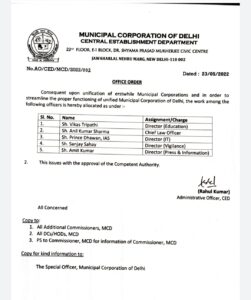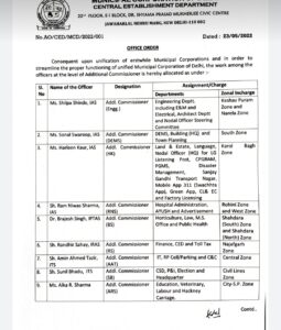 इनके अलावा हेड ऑफ डिपार्टमेंट की बात करें तो विकास त्रिपाठी को डायरेक्टर एजुकेशन , अनिल कुमार शर्मा को चीफ लॉ ऑफिसर, प्रिंस धवन को डायरेक्टर आईटी के साथ डीसी सिविल लाइन जोन , संजय सहाय डायरेक्टर विजिलेंस और अमित कुमार को डायरेक्टर पीएनआई नियुक्त किया गया है। उधर अंकिता मिश्रा को डिप्टी कमिश्नर सिविल लाइन और जितेंद्र कुमार को डीसी रोहिणी जोन के पद पर नियुक्त किया गया है।