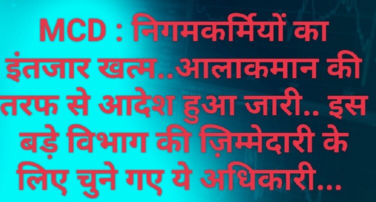 MCD : निगमकर्मियों का इंतजार खत्म..आलाकमान की तरफ से आदेश हुआ जारी.. इस बड़े विभाग की ज़िम्मेदारी के लिए चुने गए ये अधिकारी…