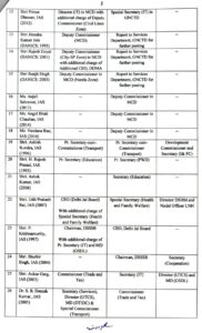 20वें नंबर पर एच राजेश प्रसाद हैं जो कि 1995 बैच के आईएएस अधिकारी हैं उन्हें प्रिंसिपल सेक्रेट्री एजुकेशन से हटाकर अब प्रिंसिपल सेक्रेटरी पीडब्ल्यूडी बना दिया गया है। 21वें नंबर पर अशोक कुमार हैं। कुमार 2006 बैच के आईएएस अधिकारी हैं ।उन्हें एजुकेशन विभाग में सेक्रेटरी के पद पर पोस्टिंग दी गई है।