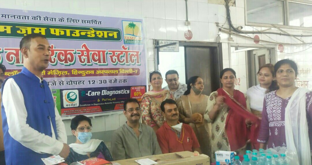 ज़म ज़म फाउन्डेशन के द्वारा हिन्दूराव अस्पताल में लगने वाली वरिष्ठ नागरिक सम्मान ओपीडी में आज एक वरिष्ठ नागरिक सेवा स्टॉल लगाकर अस्पताल आने वाले सभी लगभग 200 बुज़ुर्ग मरीज़ों को एक पानी की बोतल, जूस,बिस्कुट, डाइट मिक्चर, व मास्क के साथ साथ गर्मी में धूप से बचने के लिए एक एक गमछा भी वितरित किया गया ।