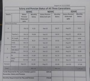 वहीं पूर्वी दिल्ली में काम कर रहे हैं स्टाफ की सैलरी अगस्त तक की दे दी गई है। केवल सफाई कर्मचारी और एमटीएस स्टाफ को अक्टूबर व सितंबर की सैलरी दे दी गई है। वही पेंशनधारियों की बात करें तो उन्हें अब तक जुलाई महीने की पेंशन दे दी गई है।