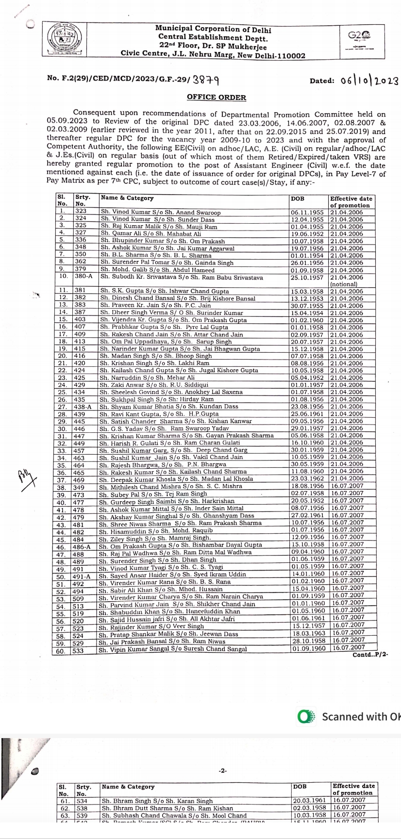 दिल्ली नगर निगम के इंजीनियरिंग विभाग के इंजीनियर लगभग 17 सालों से अपने रेगुलर प्रमोशन की मांग पर अड़े थे। उन मांगो पर अब जाकर निगम प्रशासन ने अपनी ओर से मुहर लगा दी है।