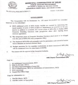 दिल्ली नगर निगम द्वारा जारी आर्डर में लिखा है कि 3092 डीबीसी कर्मचारियों को वेकेंट एमटीएस पोस्ट में भर्ती किया जा रहा है।