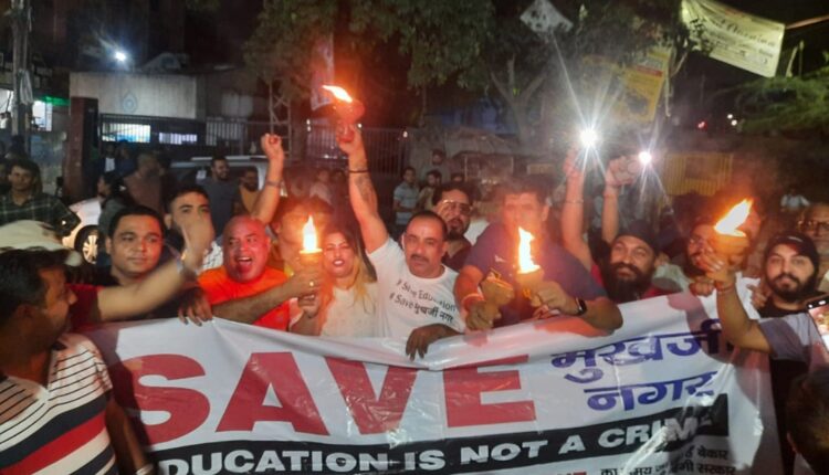 यूपीएससी की तैयारी करने वालों के हब मुखर्जी नगर को सीलिंग की मार से बचाने स्थानीय लोगों लामबंद हो गए है। कोचिंग संस्थानों के साथ ही व्यापारी, पीजी चलाने वाले और छात्रों ने भी मोर्चा खोला है। अपनी मांगों को लेकर मंगलवार को मशाल जुलूस निकालकर विरोध दर्ज किया। सोमवार को भाजपा सांसद मनोज तिवारी से मुलाकात कर उन्हें ज्ञापन सौंपने के बाद मुखर्जी नगर बचाव मुहिम के तहत सड़क पर उतरकर अपनी मांगें रखीं।