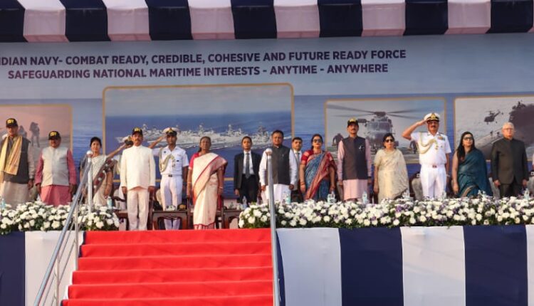 The Hon’ble President of India and the Supreme Commander of the Armed Forces Droupadi Murmu*, was the Chief Guest for the event, which was hosted by *Adm Dinesh K Tripathi*, Chief of the Naval Staff. The event was also witnessed by *senior Central and State Government officials, military dignitaries, and the local populace*.
