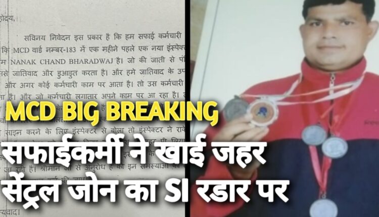 MCD BIG BREAKING : सेंट्रल जोन के सफाईकर्मी राकेश ने खाया जहर..सेनेटरी इंस्पेक्टर के खिलाफ नोटिस जारी..